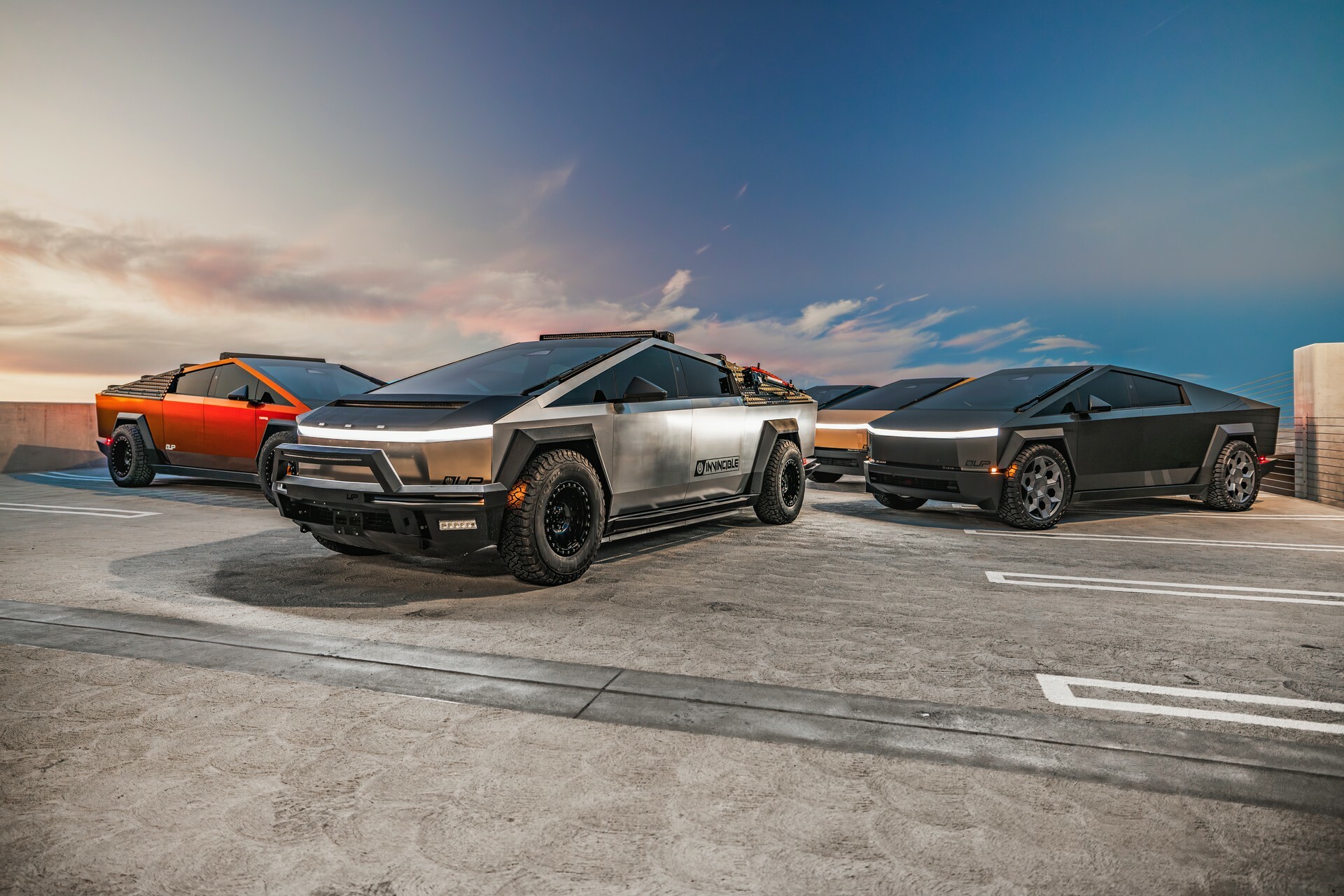 The most dramatic of them will be showcased at the Mothers Polish booth and comes equipped with Unplugged’s full line-up of ‘Invincible’ parts. These upgrades and accessories were previewed in December last year and include new heavy-duty steel front and rear bumpers that’ll set back buyers $2,995 and $3,995. That’s a lot of money for some new bumpers, but as we’ve learned over the last year, most Cybertruck owners aren’t short on cash.