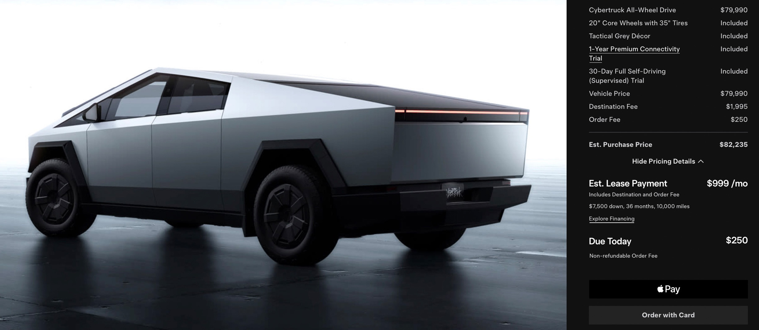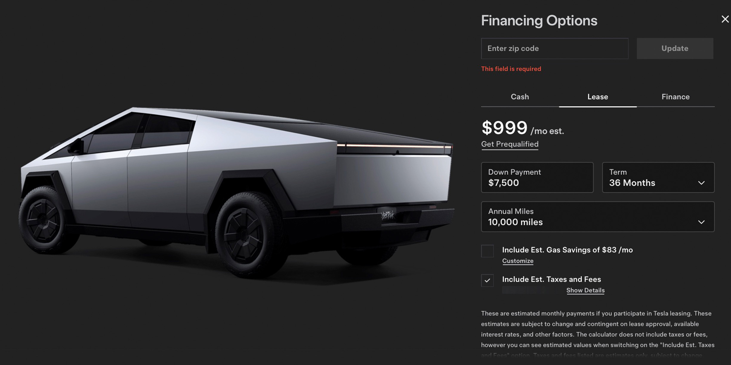 Is $999 (plus $7,500 down) per month to drive a Cybertruck a good deal? Leave a comment below and let us know what you think.