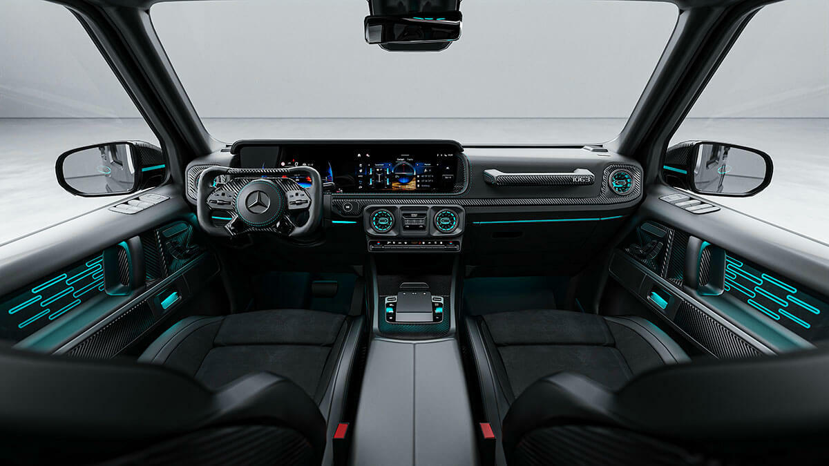 This wild creation is known as the Sir Class and sports an overhauled version of the G63’s venerable 4.0-liter twin-turbocharged V8. Now sporting upgraded turbochargers, aluminum pistons, stronger connecting rods, a high-flow fuel system, a new air intake, and an ECU tune, the iconic V8 produces 1,048 hp (1,063 PS) and 959 lb-ft (1,300 Nm) of torque. Those are insane numbers for a G-Class, allowing it to hit 62 mph (100 km/h) in 3.5 seconds before powering through a 186 mph (300 km/h) top speed.