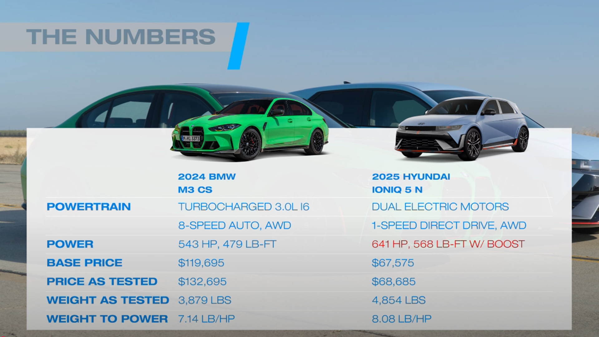 - Despite the Hyundai’s power advantage, the M3 CS easily beat it off the line.