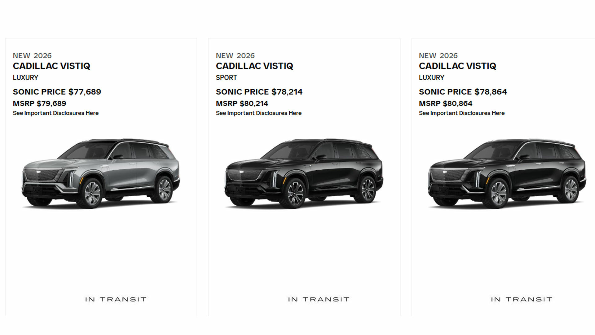 While most seem to be sticking to MSRP, Cadillac of Las Vegas has three crossovers listed for $2,000 below sticker. It’s a similar story at Mount Kisco Cadillac in New York, which has their $80,215 Vistiq Luxury listed for $78,215.
