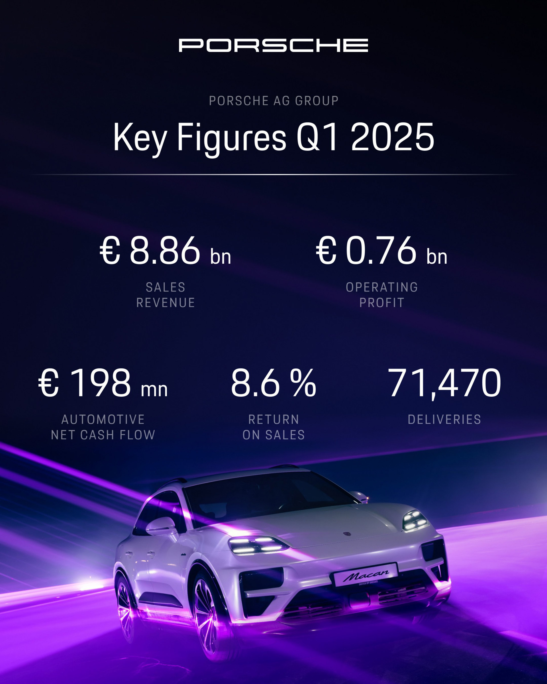 - Porsche profits dropped 40.6 percent in Jan-March 2025 to €0.76 billion.