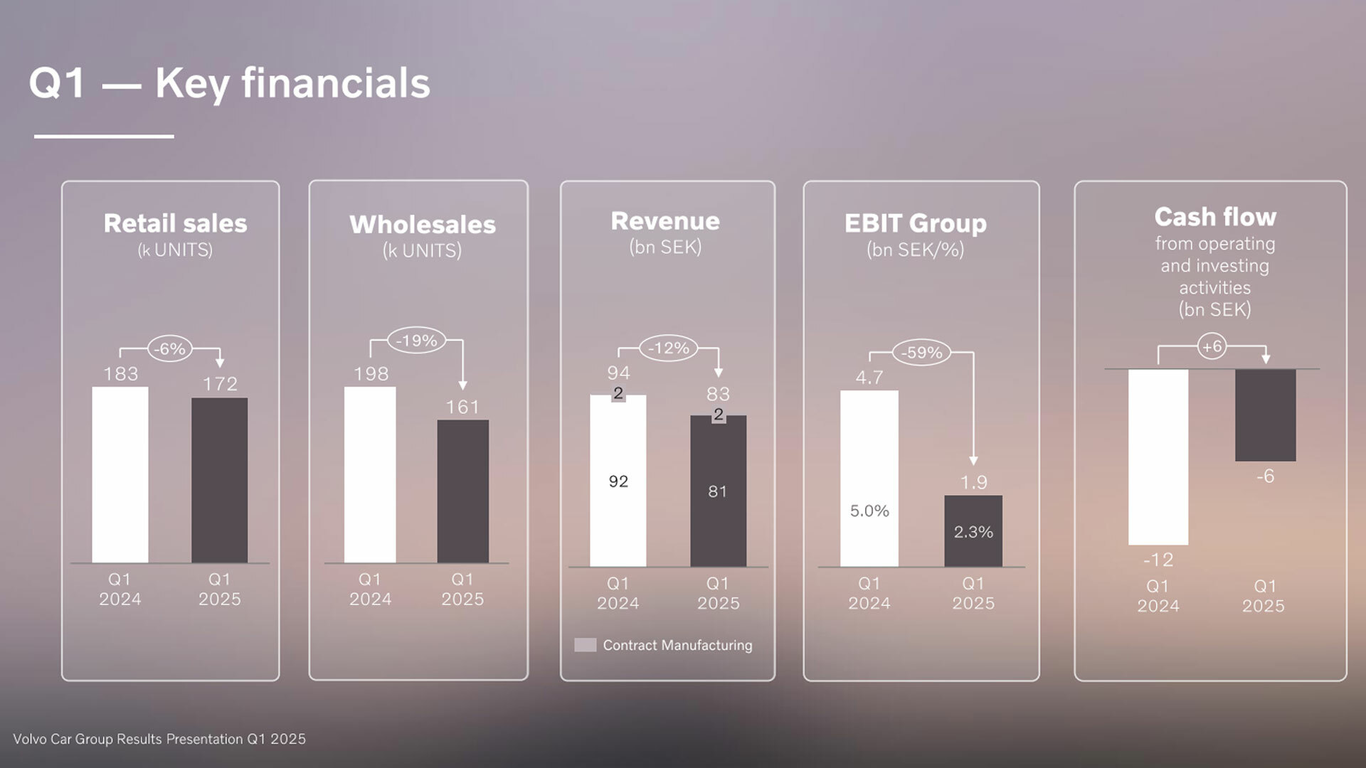 - Volvo has reported a significant decline in revenue and income for the first quarter.