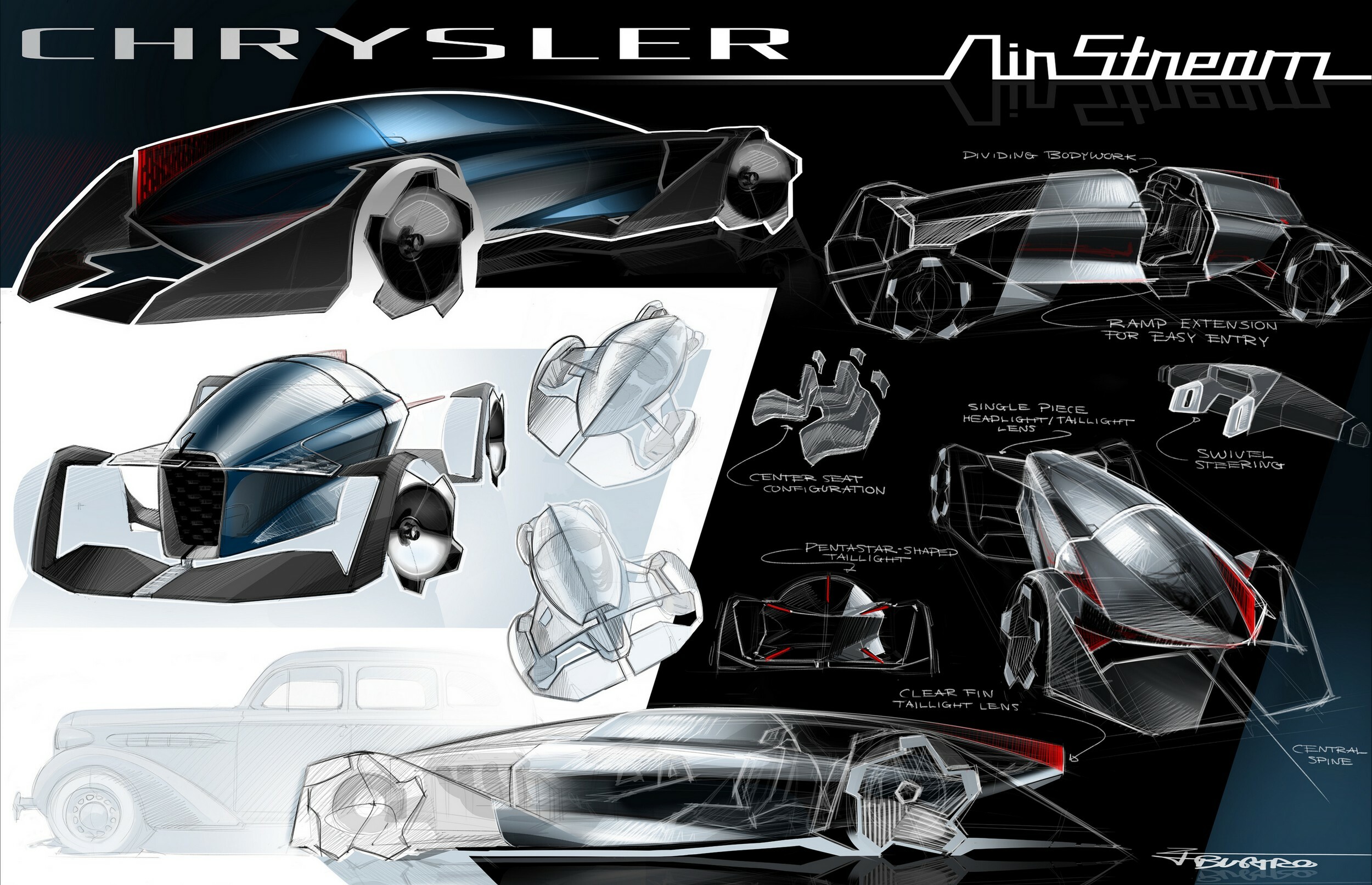 Third place went to 11th grader Owen Bronson from Michigan. His Chrysler 600 celebrates the 100th anniversary of the Chrysler Six and is a futuristic sports car. Little is known about it, but the model vaguely recalls the Firepower concept from 2005.