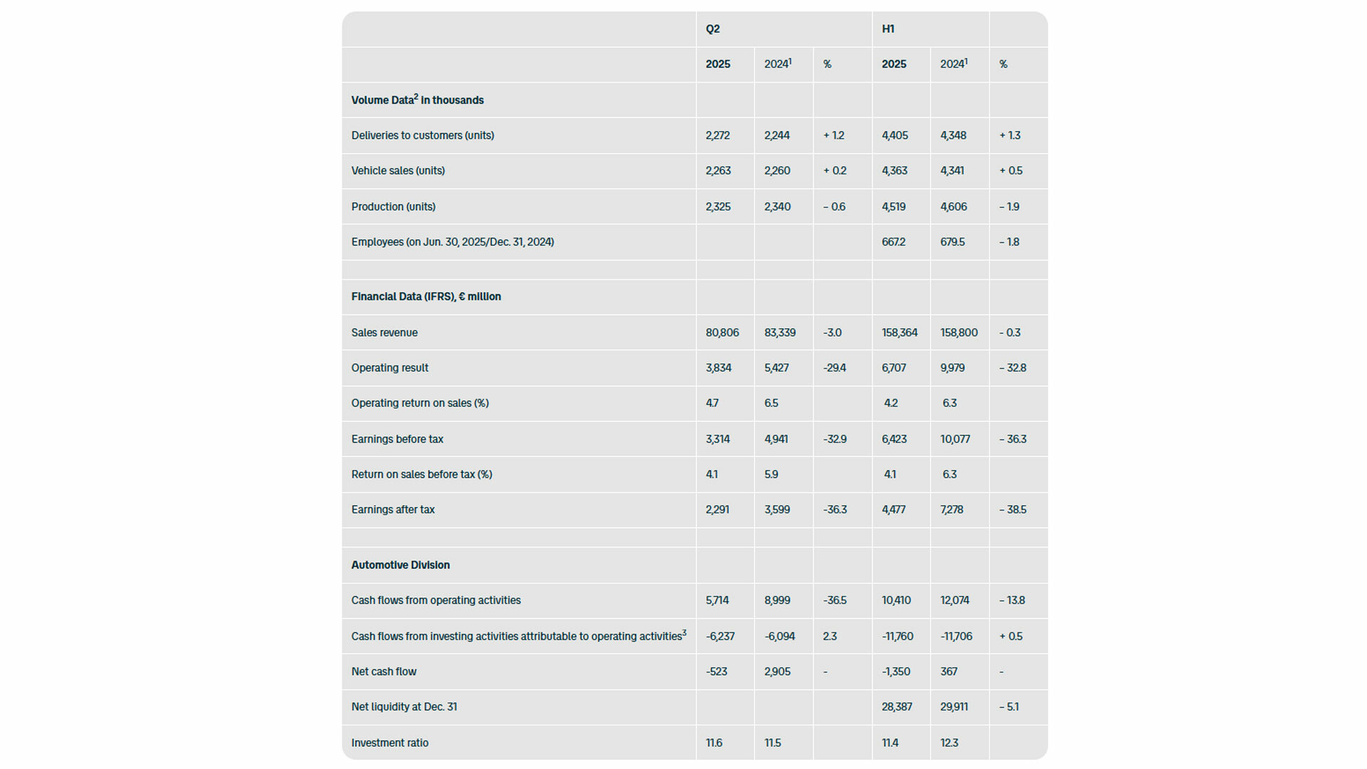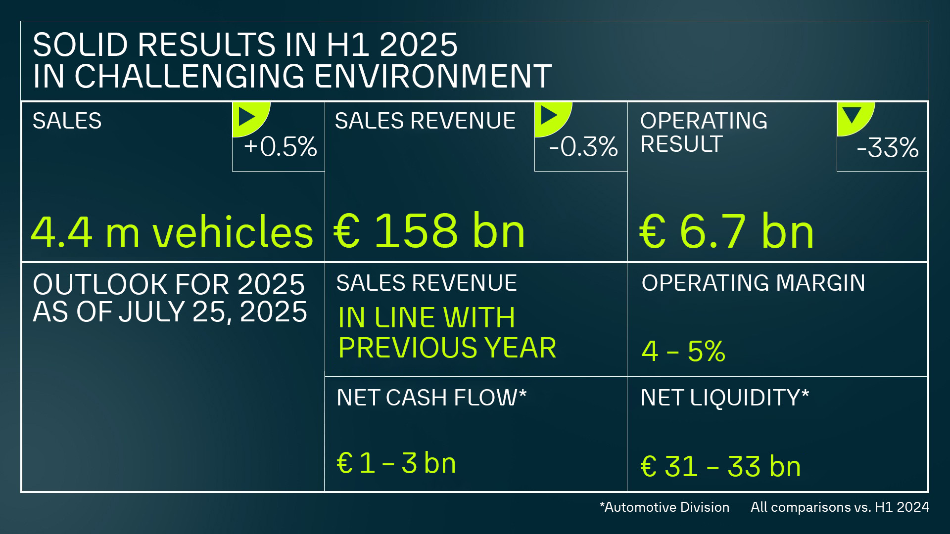 Despite a few glimmers of good news, Volkswagen lowered their forecast for 2025. Their estimated operating return on sales has been revised from 5.5-6.5% to 4-5%, while the automotive net cash flow estimate has dropped from $2.3-5.9 billion to $1.2-3.5 billion.