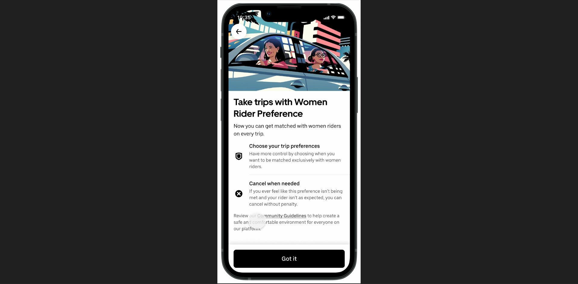 Users will also be able to set a preference for a woman driver in the settings menu. As the company explained, “While it’s not guaranteed, turning on the Women preference increases your chances of being matched with a woman driver.”