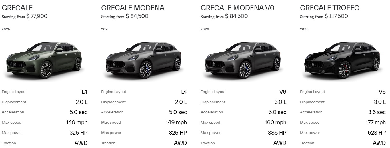 - Maserati drops four-cylinder Grecale from American lineup for 2026.