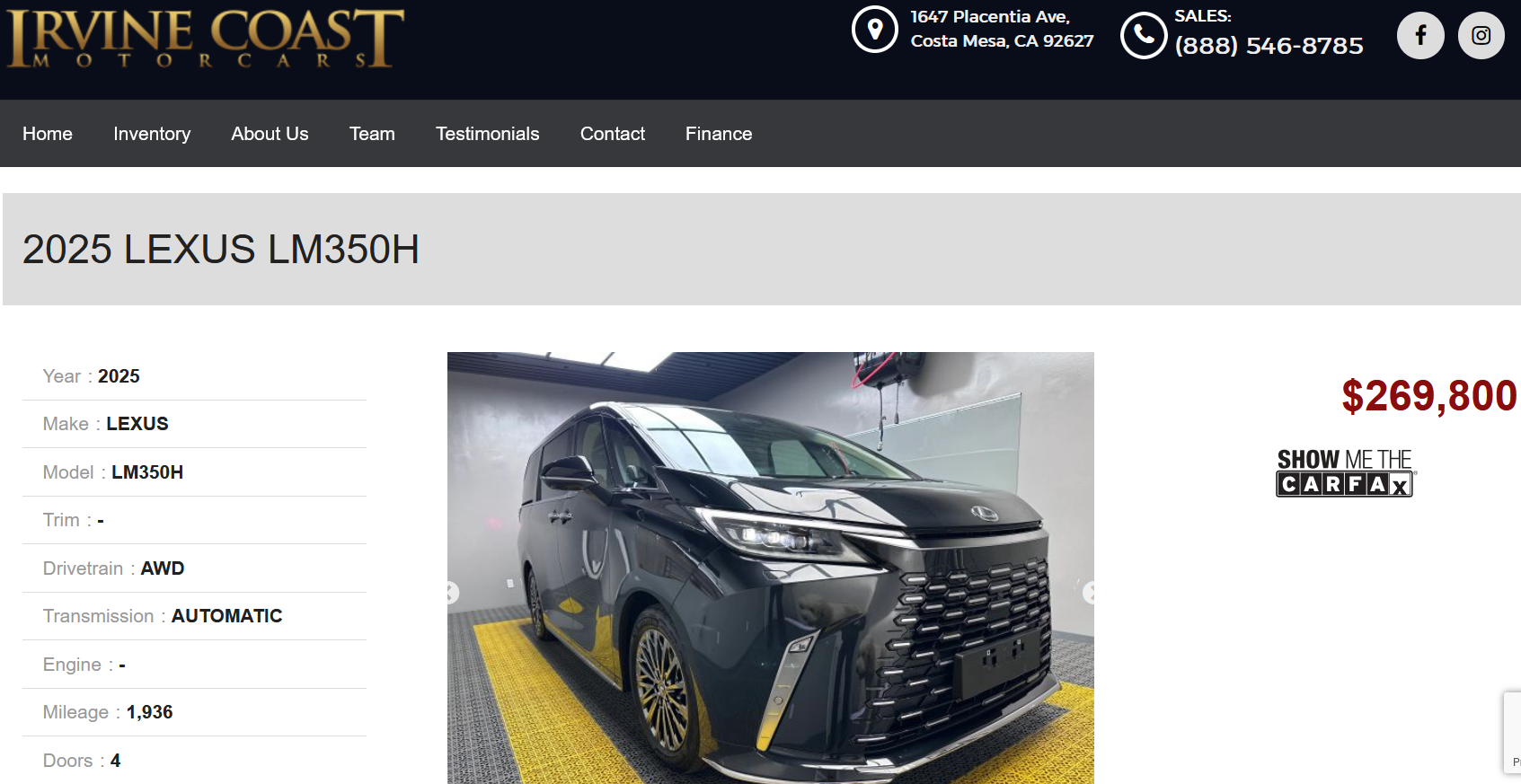 Neither Lexus nor Toyota ever certified the LM for sale in the States. To that end, these two examples listed for sale by Irvine Coast Motors need to have very special paperwork to be in the country in the first place, let alone registered for use on public roads.