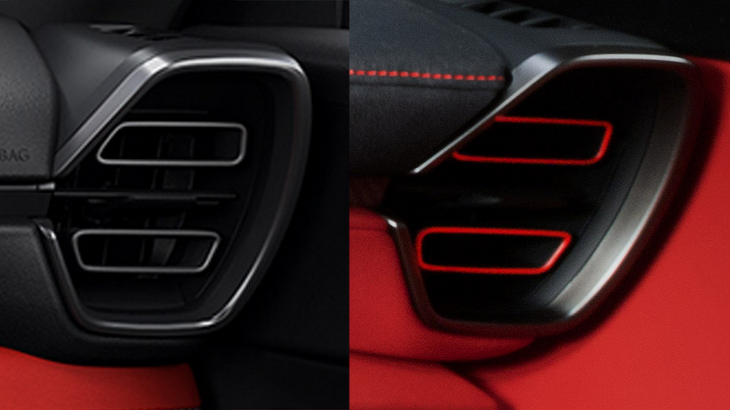 The climate vents of the Lexus IS (left) and the GR GT (right).