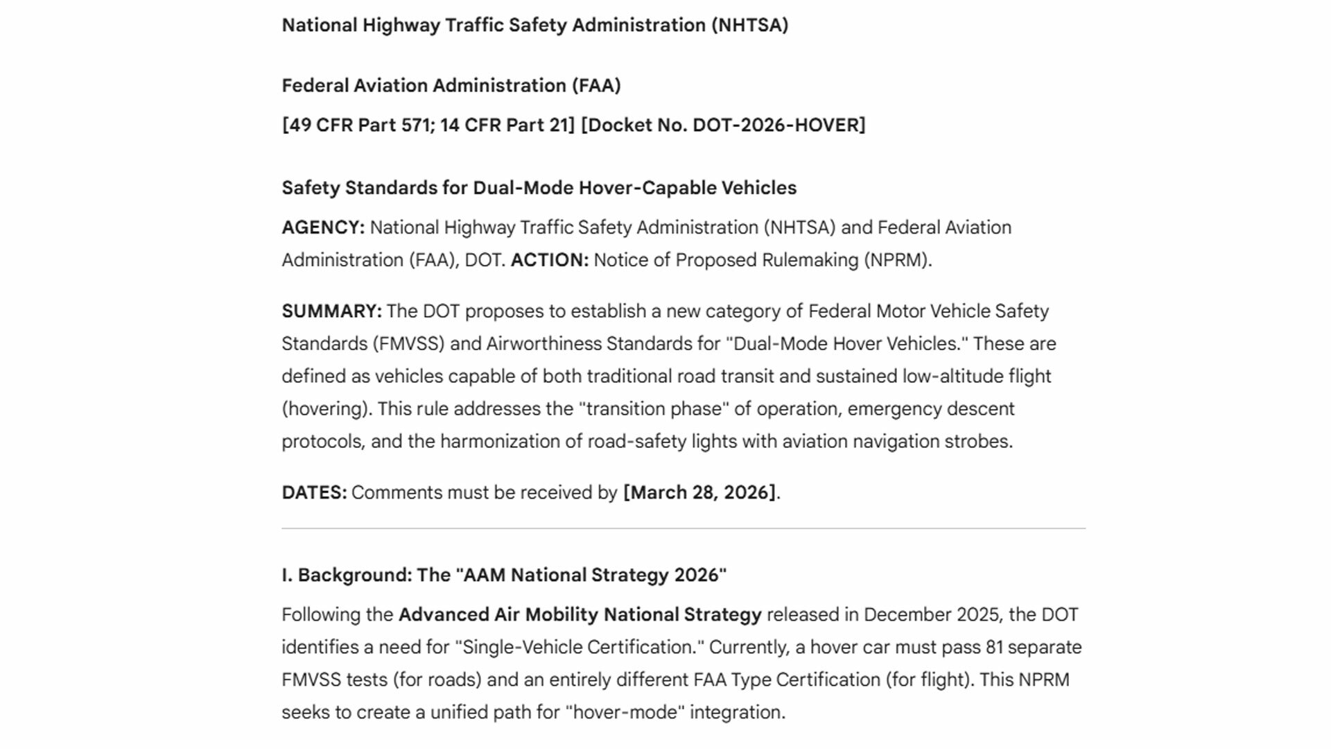 A Gemini-created draft rulemaking on hover cars