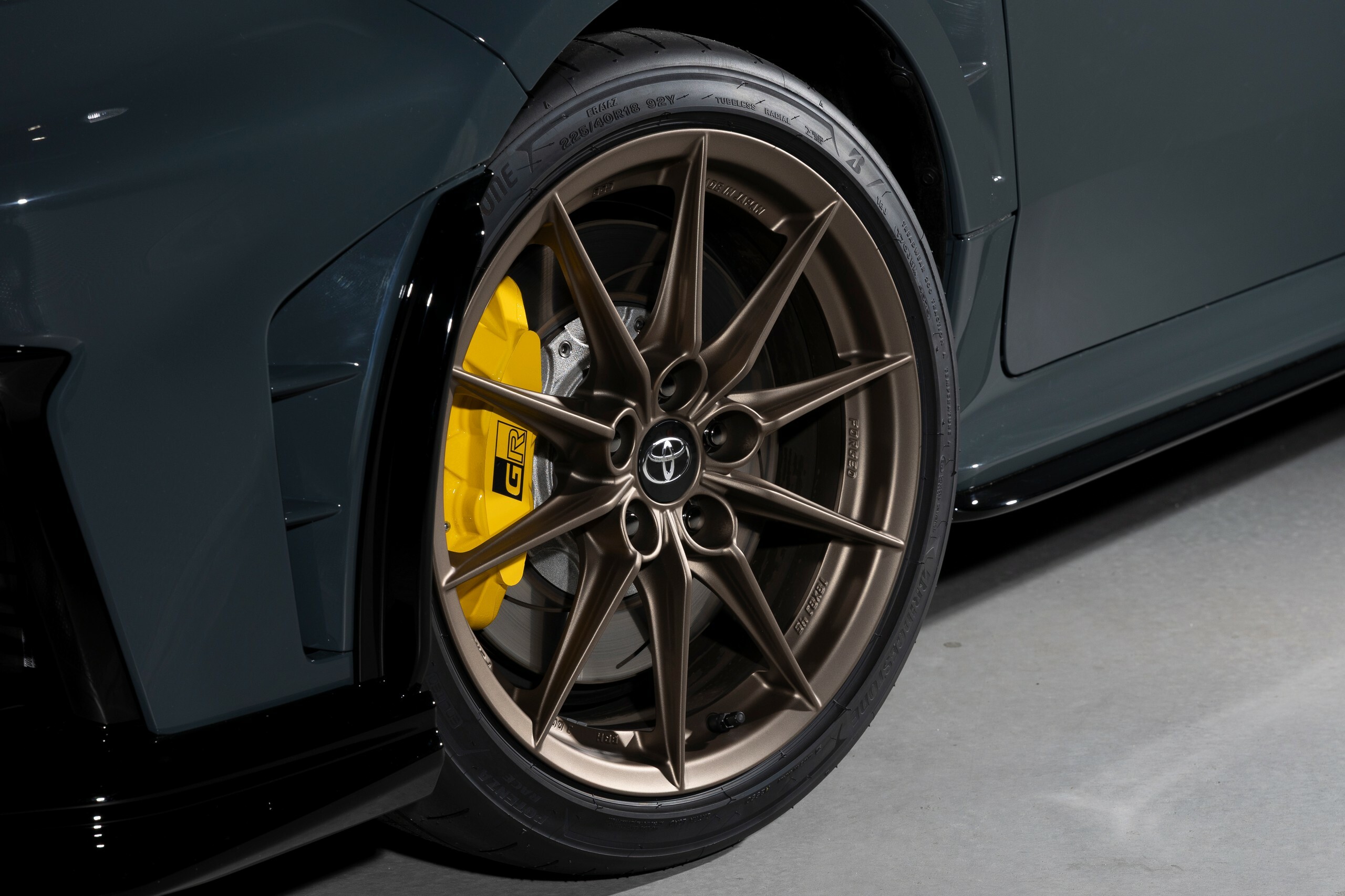 One of the most obvious changes is the addition of a large carbon fiber rear wing, complemented by a new front splitter and redesigned side skirts. Toyota has also given the car a lighter carbon fiber hood, matte bronze wheels, and bright yellow brake calipers. The body is finished in a new exclusive paint color known as Gravel Khaki, helping it stand out even further.