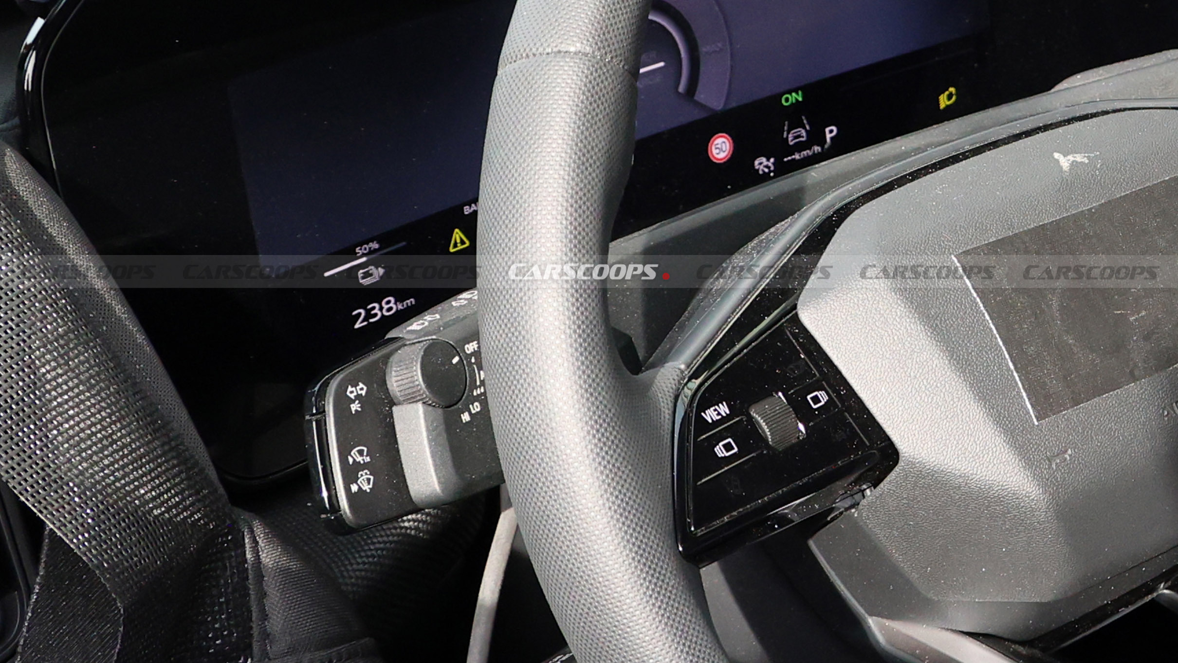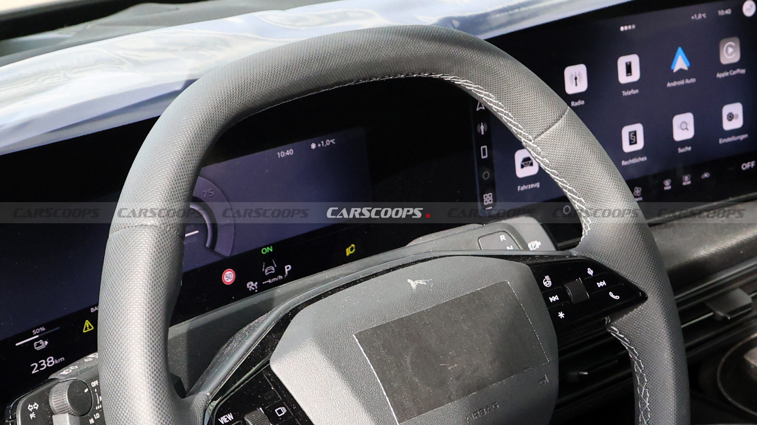 The spy shot reveals a clean, tech-forward cabin that mirrors the latest Audi Q3 revealed last September. There’s the familiar curved digital driver display flowing neatly into a central MMI touchscreen, plus Audi’s chunky, squared-off steering wheel with multi-function controls.