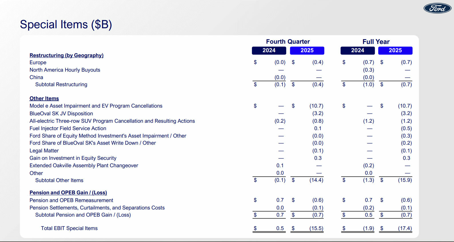 On top of that, we can expect special charges of around $7 billion in 2026 and 2027 due to their “updated EV strategy and expected disposition of BOSK [BlueOval SK] investment.”