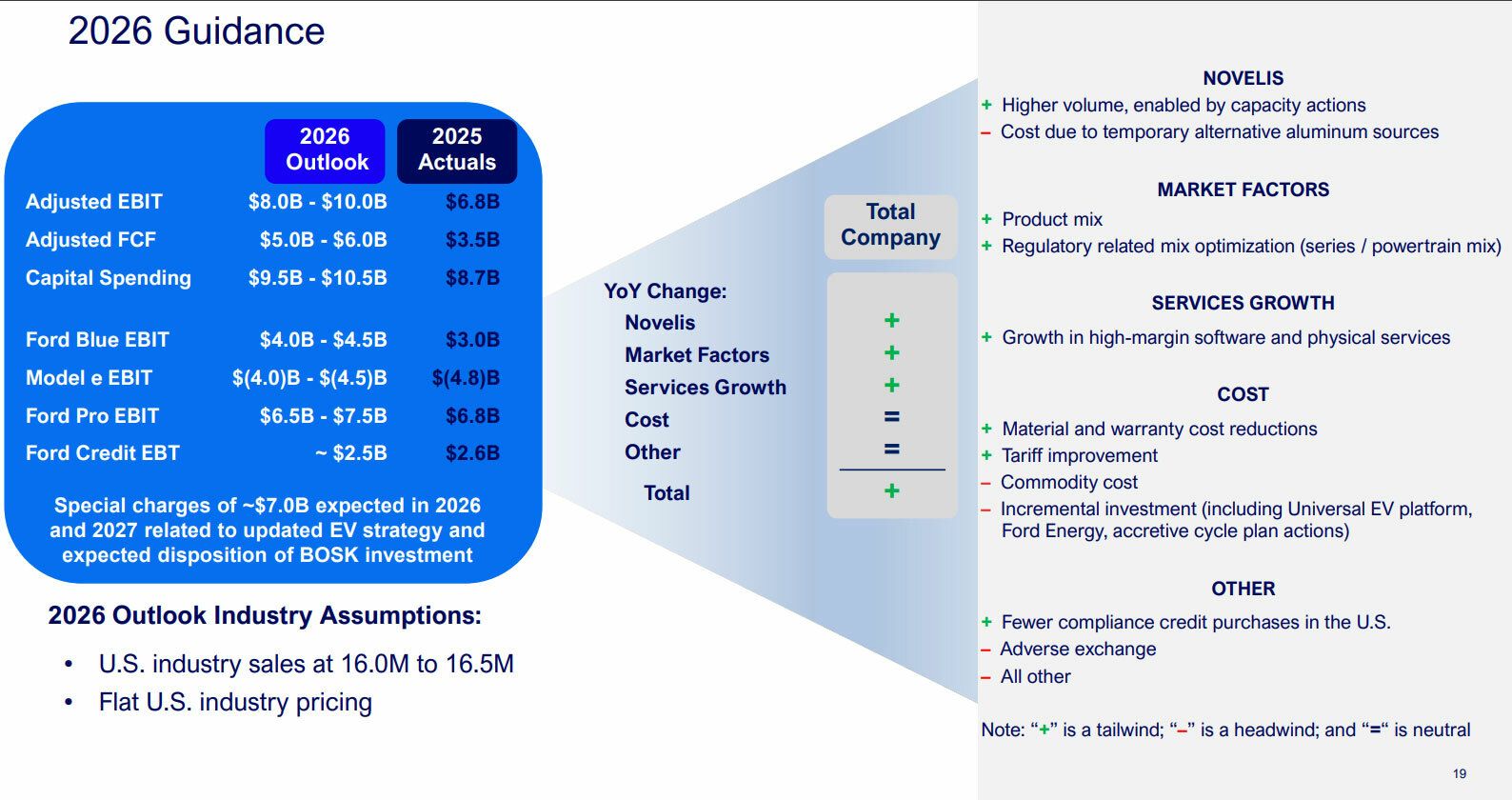 Speaking of which, the company is expecting an adjusted EBIT of between $8 and $10 billion for 2026. The automaker is also expecting to lose $4 to $4.5 billion on Ford e.