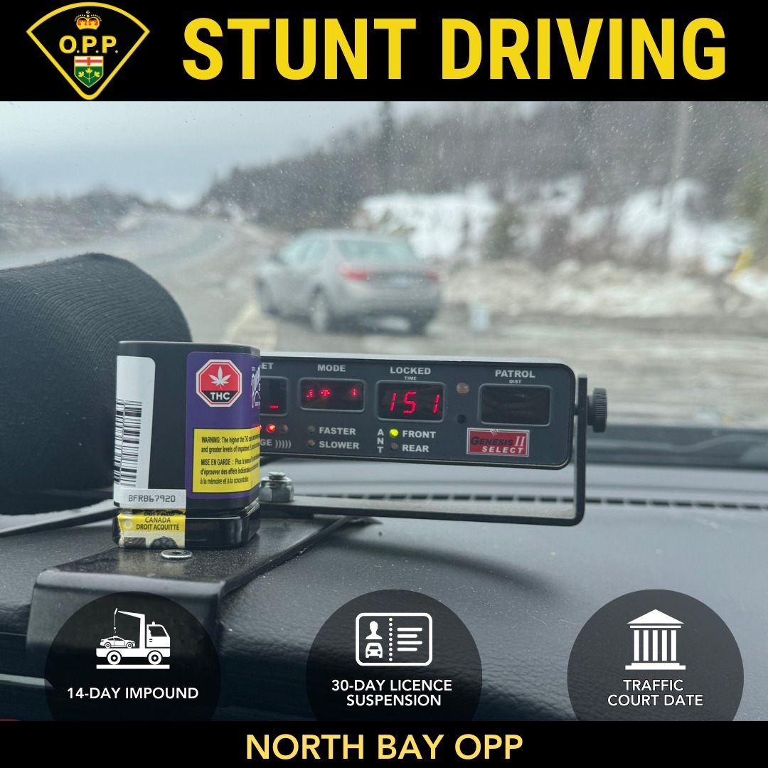 In any case, once officers pulled him over, things got worse for the driver. During the roadside interaction, officers also noticed an unsealed THC container sitting on the passenger seat, which constitutes a separate offence under Ontario law. As a result, the driver was charged with stunt driving as well as driving a vehicle with cannabis readily available.