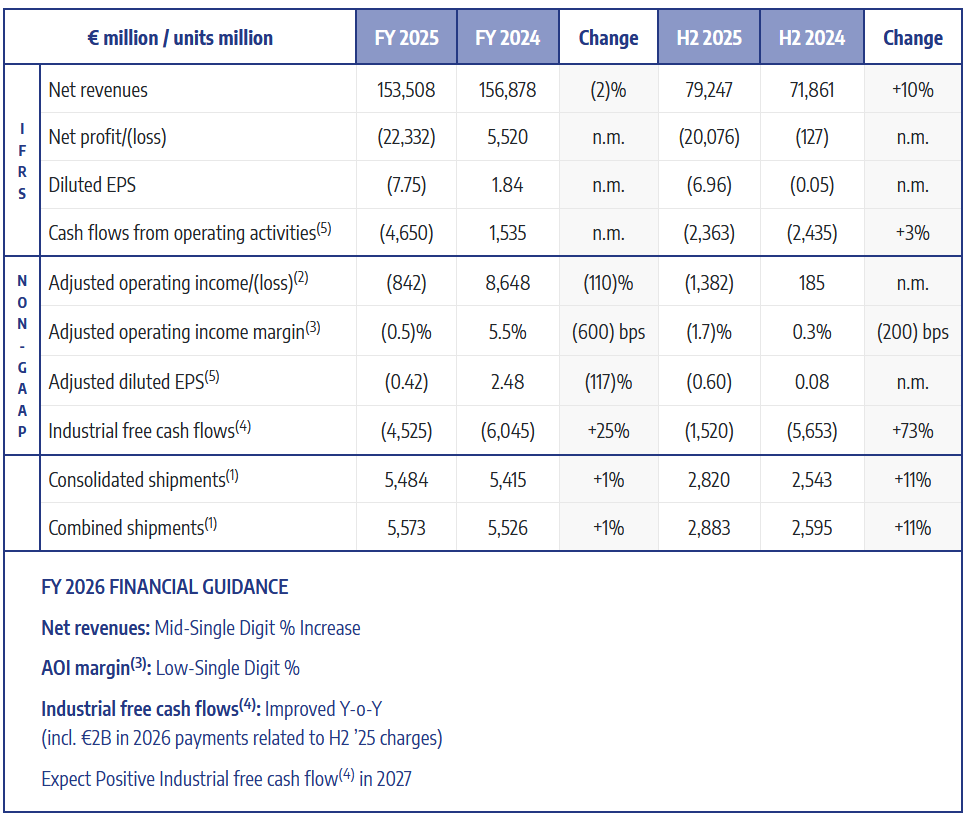 - Stellantis posts $26.3B net loss for FY 2025.