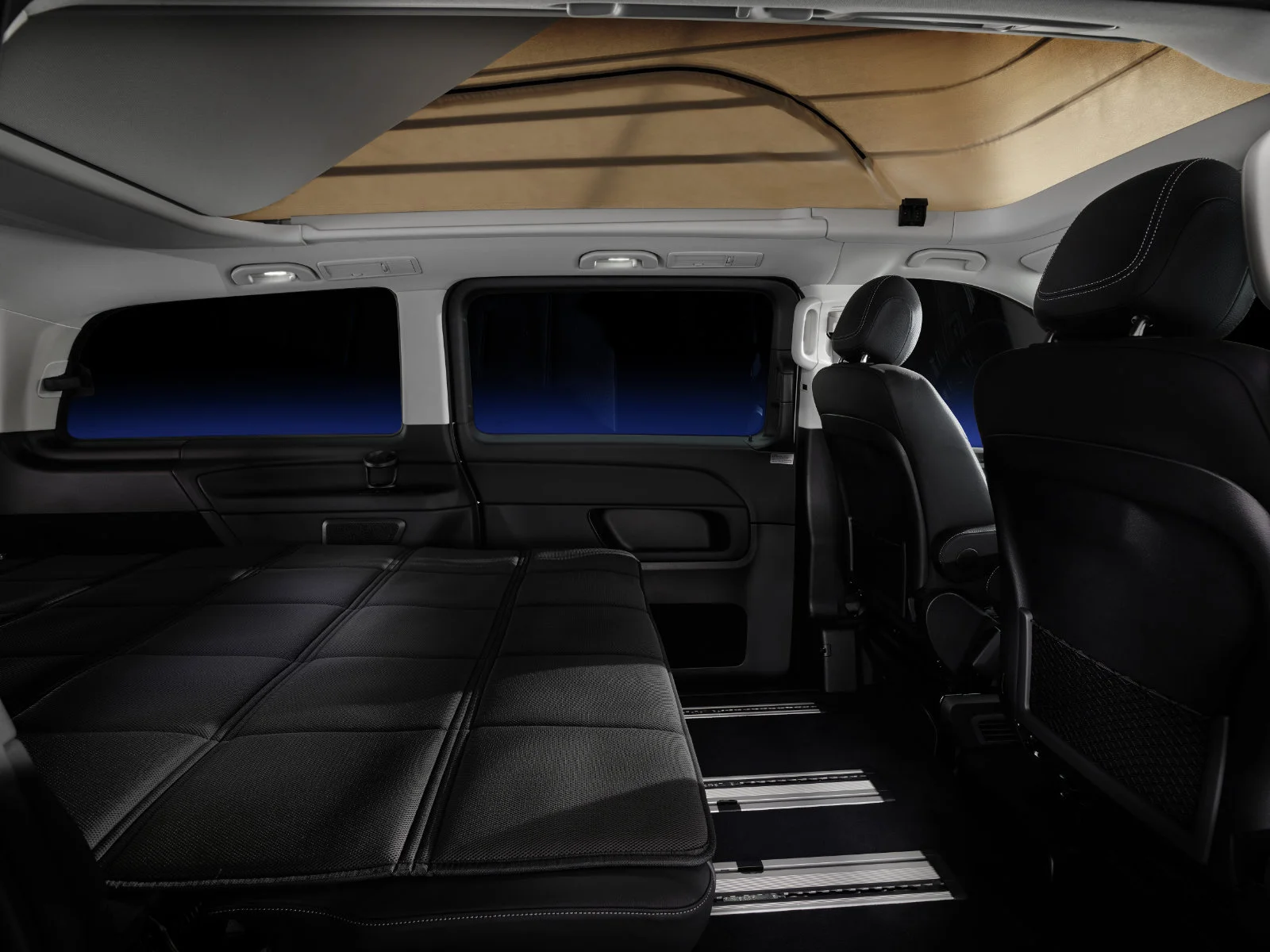 The living quarters remain focused on space efficiency. There’s still a compact kitchenette, a wardrobe, and swiveling front seats. For added privacy, Mercedes has introduced new magnetic blackout covers for the cockpit area.
