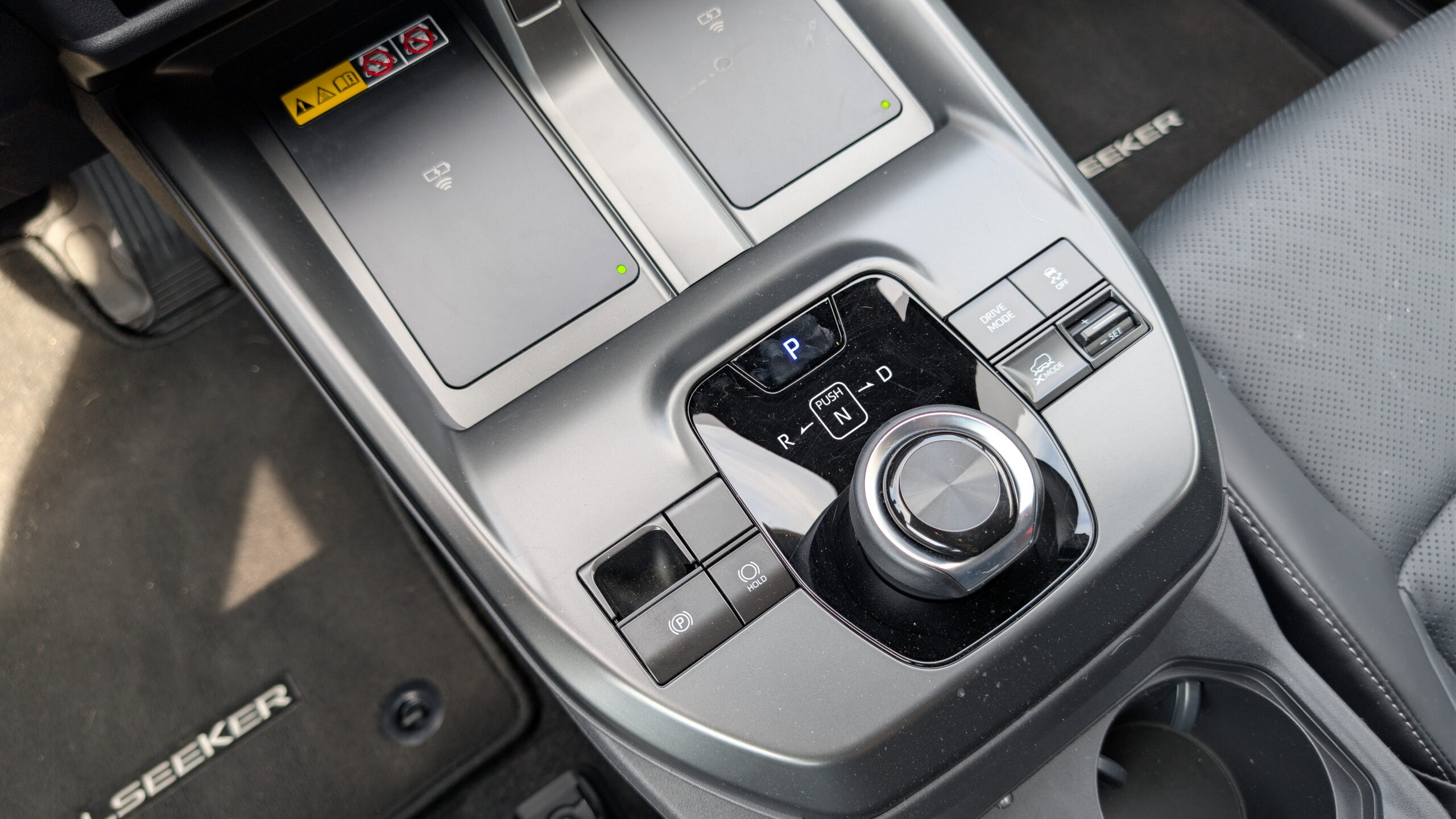 There are dual 15w wireless chargers under the screen, along with a parcel shelf underneath that. It’s key because there’s no glove box, so expect to store things differently in this car than in most others. A small ‘magic’ storage console sits behind the shifter and allows both front seat passengers to open it from their side, which is great. It doesn’t flip over like the one we tested in the latest Toyota RAV4. Speaking of that shifter, it’s one of the weirdest and perhaps least positive parts of this car.
