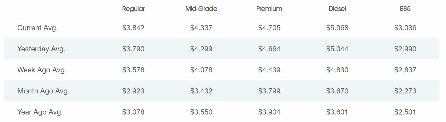 Diesel isn’t the only thing getting more expensive as the average price of a gallon of gasoline is now $3.842. That’s up from $2.923 a month ago, which equates to an increase of over 31%.