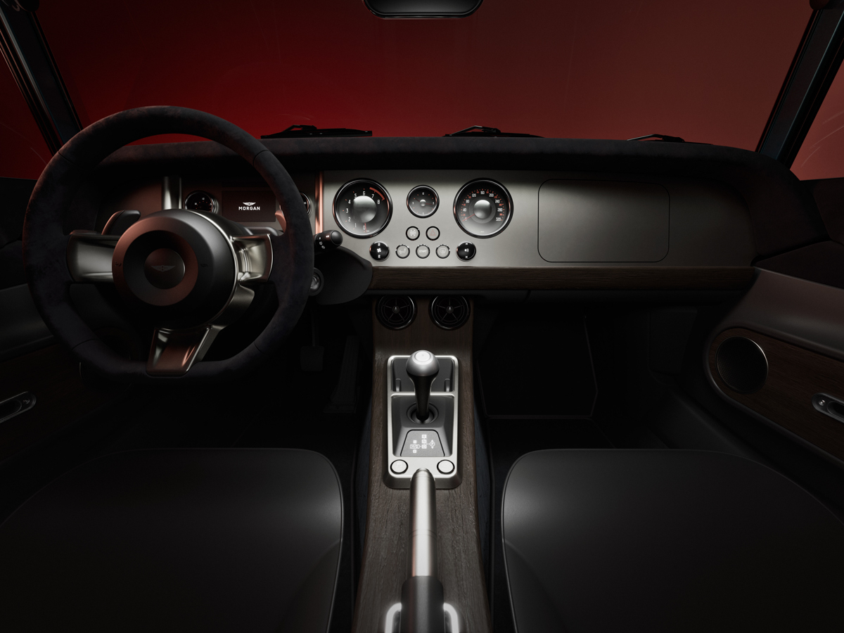 Standard kit includes Morgan’s Dynamic Handling Pack with revised suspension geometry, forged 19-inch Sportlite wheels wrapped in Michelin Pilot Sport 5 tires, and adjustable Nitron dampers. Those shocks have 24 clicks of tuning, so whether your local roads resemble billiard tables or olde-English cobbles, there’s probably a setting for that, albeit a manually-configured one.