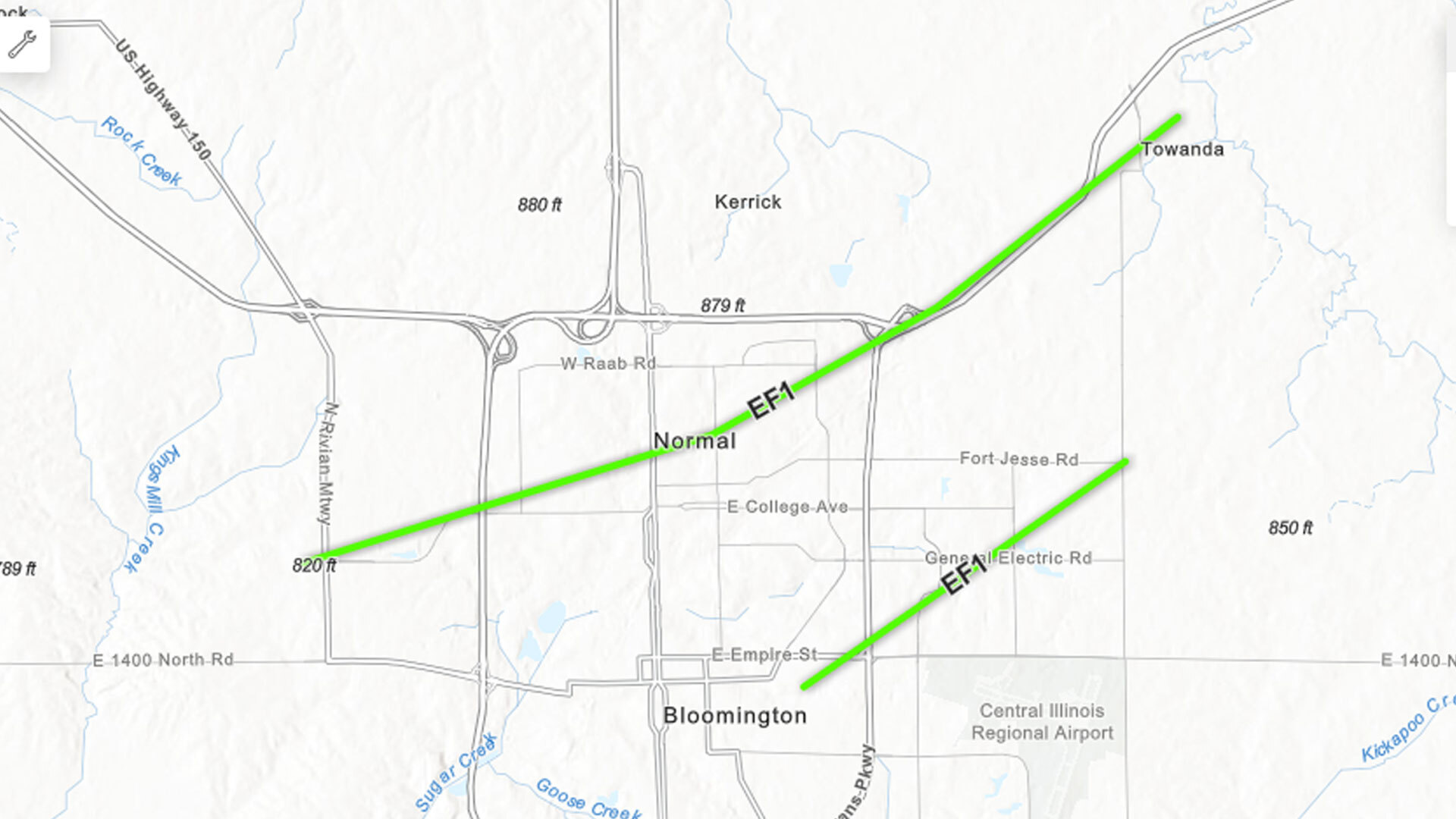 The tornado that struck the plant started at 9:57 pm and was an EF1 twister that produced winds up to 110 mph (177 km/h). It traveled 10.3 miles (16.6 km) and was 800 yards (2,400 feet) wide. The government said it “damaged several metal buildings,” caused significant tree damage, and flipped over a semi on I-55.