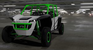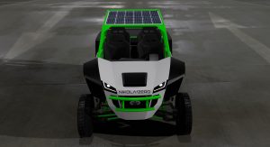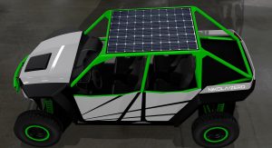 Some of the features equipping the zero-emission UTV are two 300-watt solar panels on the roof, front and rear LED light bars, flood lights, two 3,500 lbs (1,588 kg) winches, ambient lights, 110V and 12V outlets, 4G LTE connectivity, Wi-Fi, two 7-inch displays, a 10-inch screen, on-board air compressor and tire inflation system.
