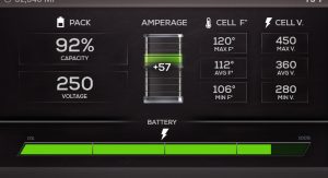 The electric motors and gearbox are IP67 waterproof, meaning that they are totally protected against dust and can withstand immersion between 15 cm (6 in) and 1 meter (39 in). Power comes from a 400-volt 50 kWh lithium-ion battery pack, which gives the study an electric range of 100-150 miles (161-257 km). The battery can be recharged from a 110V outlet or a fast charger.