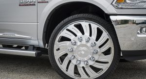 The custom wheels are made by Forgiato and feature a spinning design like every one from the Duro Dually collection made specifically for the heavy duty truck market, where we often see dual-wheel setups at the rear.